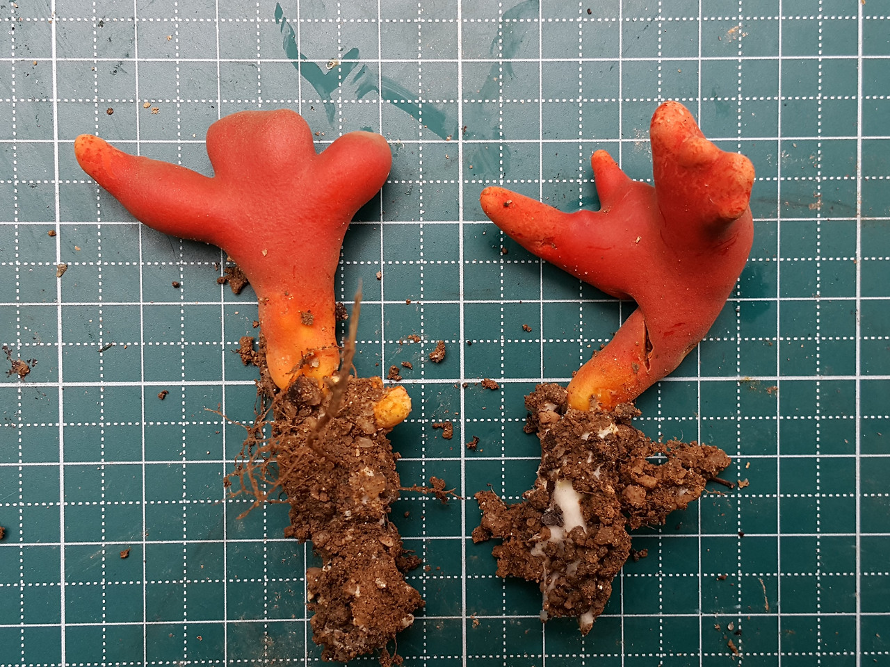 영지버섯이 어릴 때의 모습을 닮은 붉은사슴뿔버섯...저거 먹으면 그냥 갑니다.