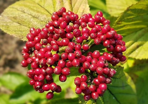 - 잎은 넓고 톱니 모양, 열매는 투명감 있는 붉은 빛