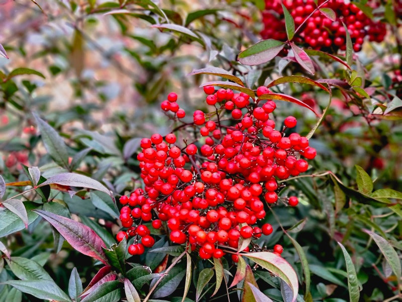 가을부터 겨울까지 피라칸타, 마가목, 낙상홍, 남천, 덜꿩나무 등은 산과 공원, 정원에 붉은색 열매를 매달아 계절의 정취를 더합니다. 이들은 대부분 새의 겨울 먹이로도 중요하며, 조경적 가치가 높습니다. 특히 피라칸타와 낙상홍은 눈 덮인 풍경 속에서 더욱 선명한 붉은색을 띠어 겨울철 풍경 사진의 주요 피사체로도 사랑받습니다.