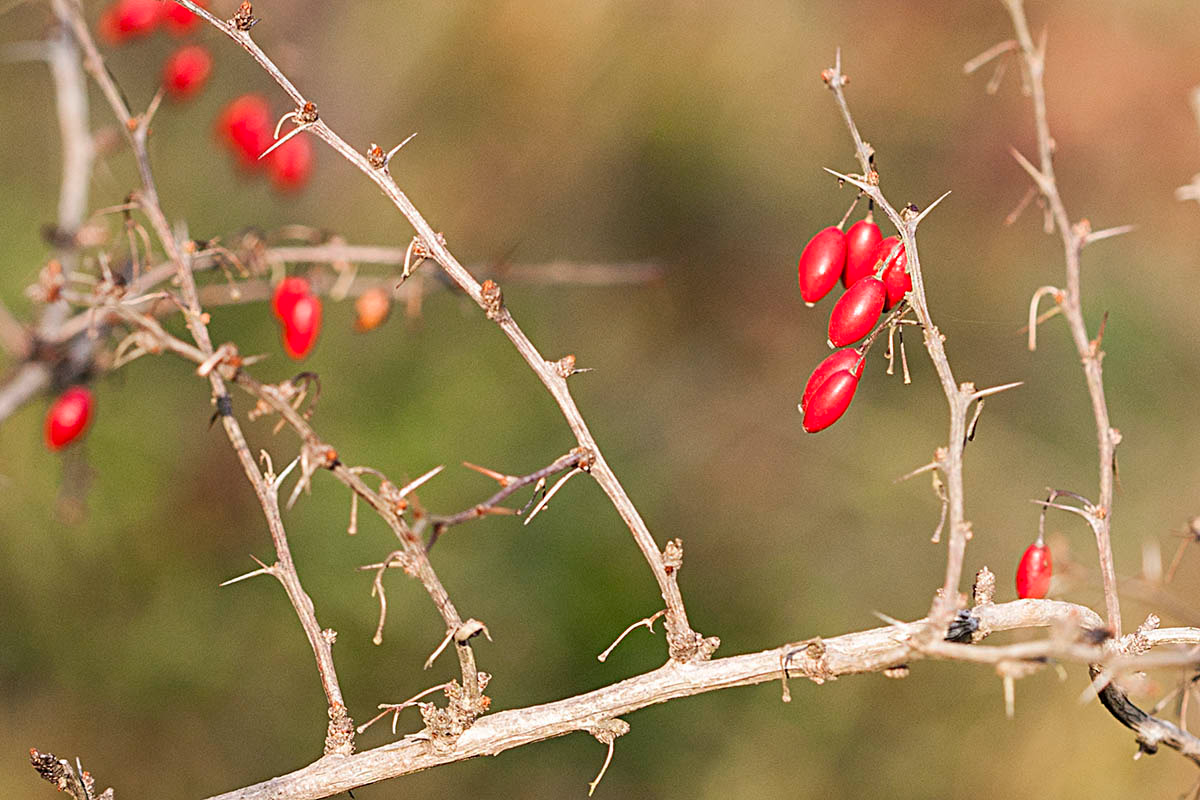 매자나무는 매자나무과의 낙엽관목으로, 잎은 타원형이며 가시가 있고 봄에 노란 꽃을 피웁니다. 가을이면 타원형 붉은 열매가 열리며, 관상용뿐 아니라 한약재로도 쓰입니다.