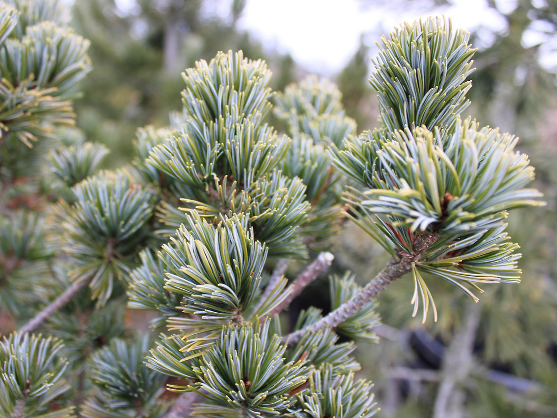 - 특징: 잣을 생산하는 경제수로 잎이 부드럽고 청록색입니다.
