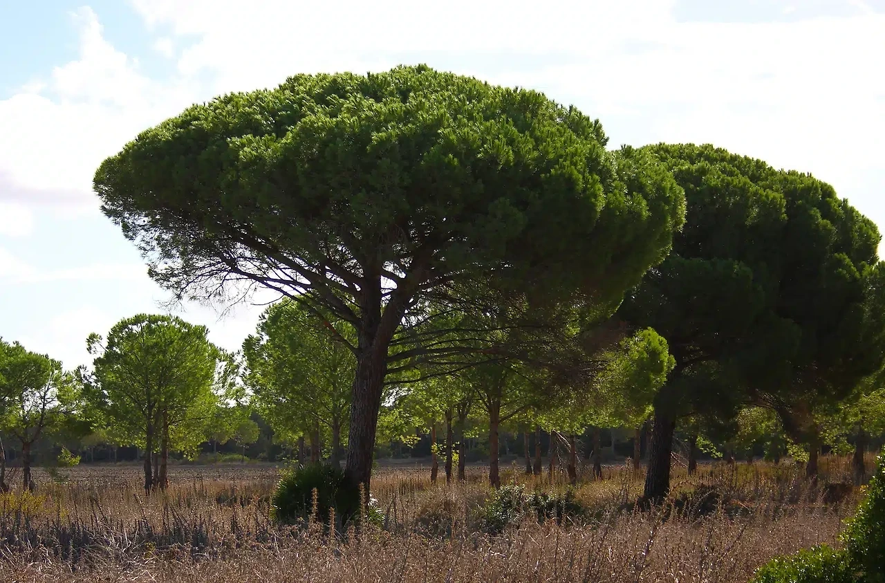 - 특징: 우산 모양 수관, 식용 종자 생산
