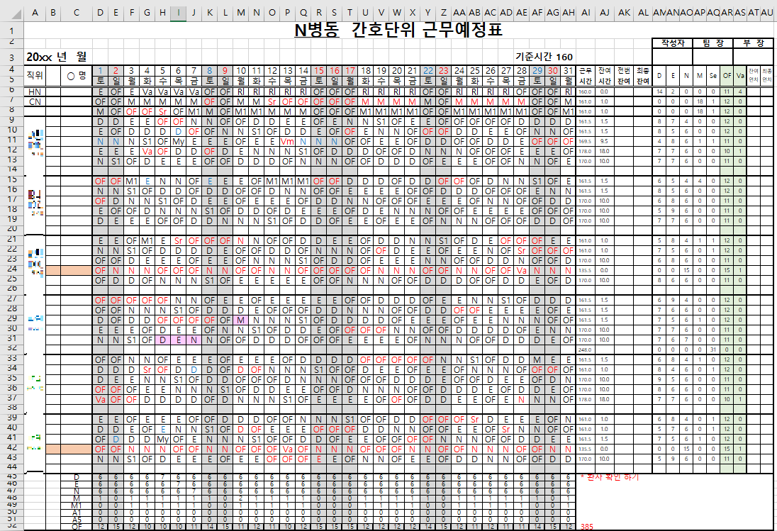 - 개인 사정 반영: 간호사마다 가족, 육아, 건강 등의 사정이 다르므로, 근무표 작성 시 가능한 한 균형 있게 고려해야 합니다.