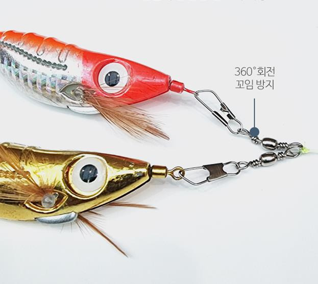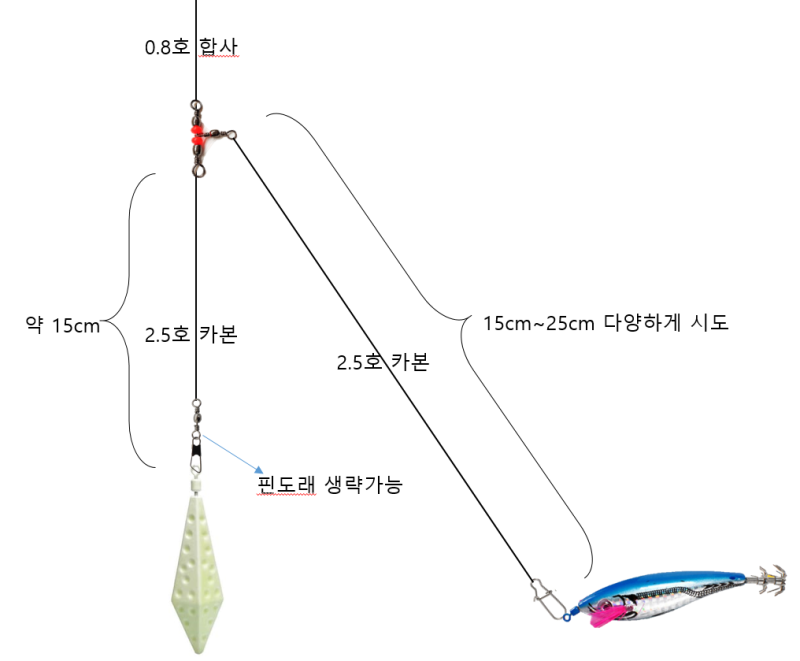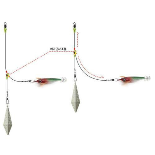 - 양핀도래 채비: 하나는 에기, 하나는 봉돌. 채비의 엉킴 방지에 유리.