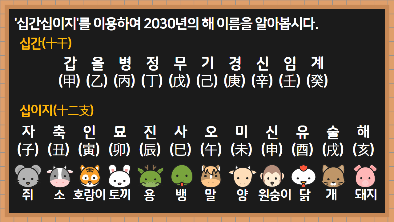 - 출생연도의 간지 = 해당 연도가 60갑자 순서에서 몇 번째인지로 결정