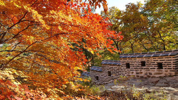 유네스코 세계문화유산으로 등재된 남한산성은 역사적 가치와 자연경관이 조화된 단풍 명소입니다. 성곽을 따라 걷는 산책로에는 붉고 노란 나무들이 물들어 있으며, 단풍길과 옛 성벽이 어우러져 마치 고즈넉한 한 폭의 그림과 같은 분위기를 자아냅니다.