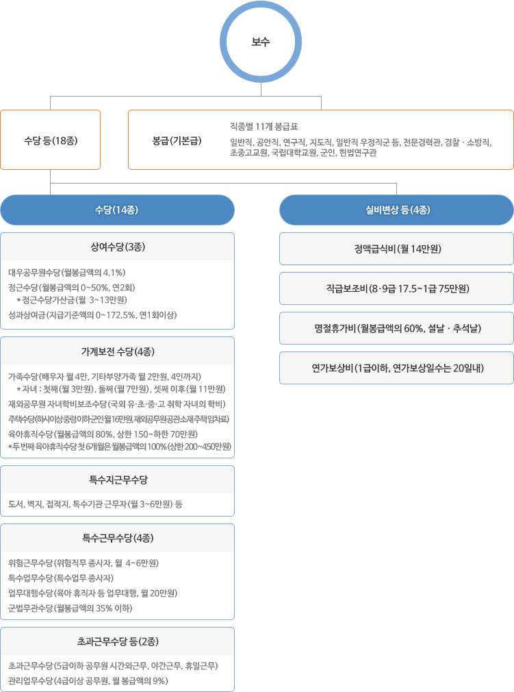- 직급보조비: 영관장교 13만~31만 원, 장성급 최대 124만 원