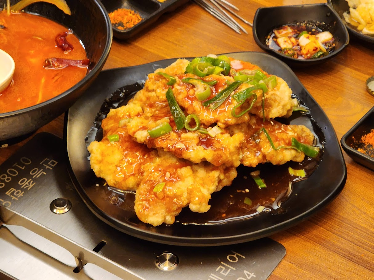 꿔바로우는 얇은 전분 피막 덕분에 입안에서 ‘사각사각’ 부서지듯 씹히며, 한입 먹을 때마다 고기 본연의 단맛이 느껴집니다. 반면 탕수육은 ‘겉바속촉’이라기보다 ‘겉바속보드라움’에 가깝습니다. 두꺼운 튀김옷 안에 수분이 머물러 있어 식감이 부드럽습니다.