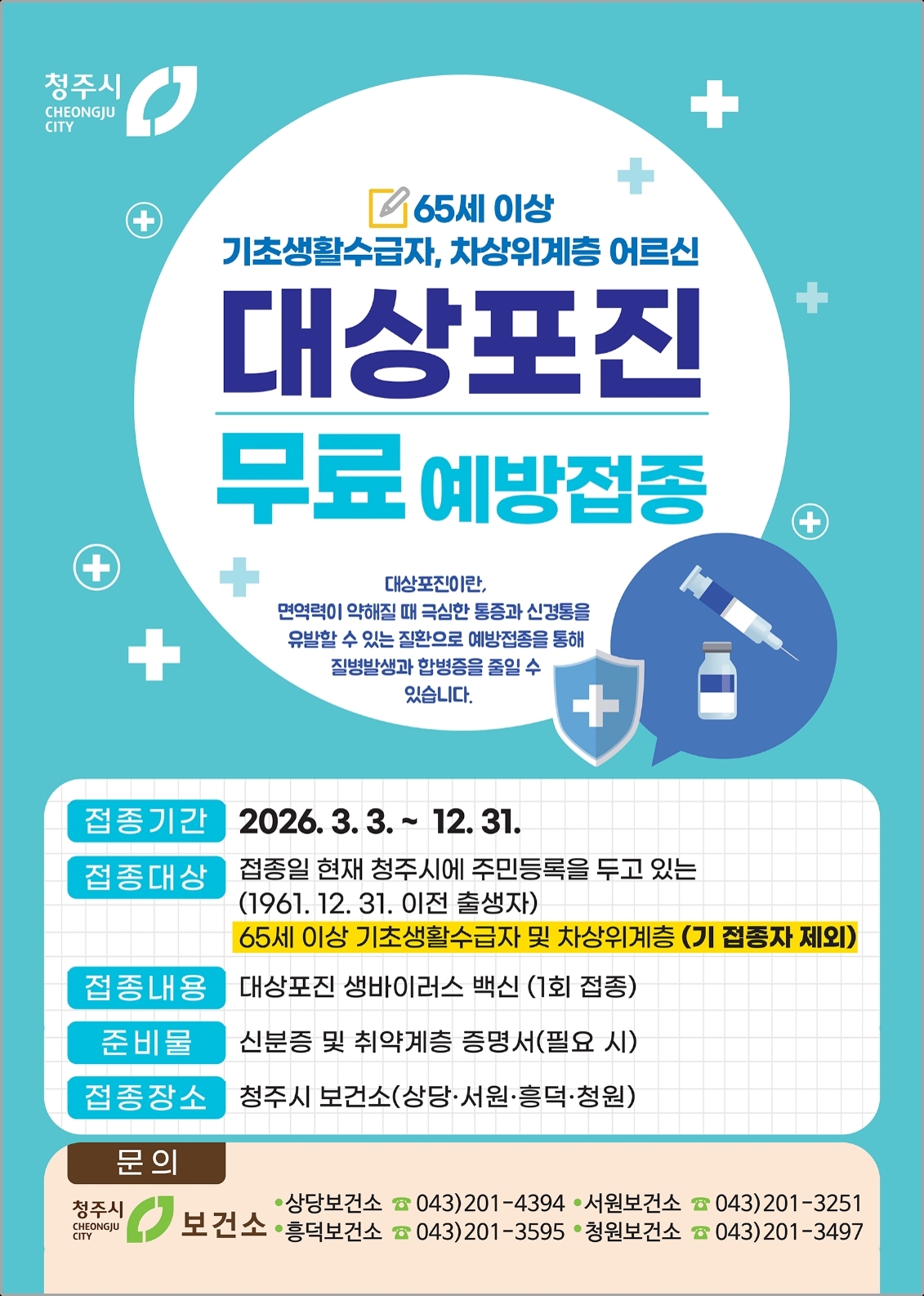 대상포진 예방접종 무료 대상자