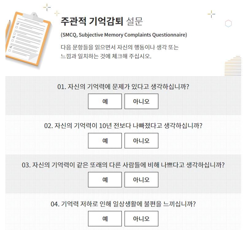 1. 중앙치매센터 온라인 자가진단으로 현재 상태 가늠