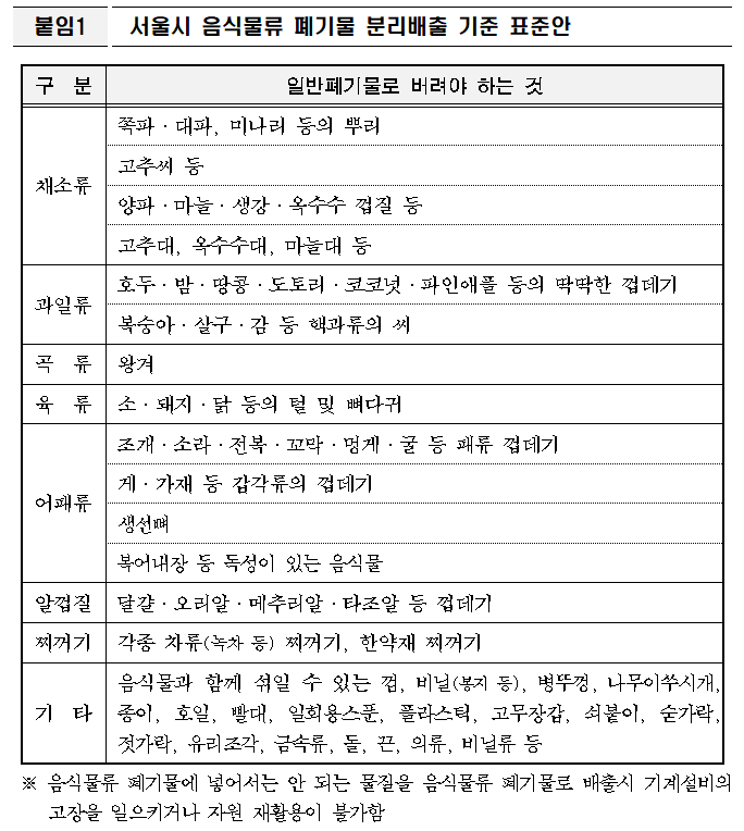 - 서울 중구·금천구: 과일류(수박, 바나나 등) 전반을 음식물로 분류해 수거합니다.