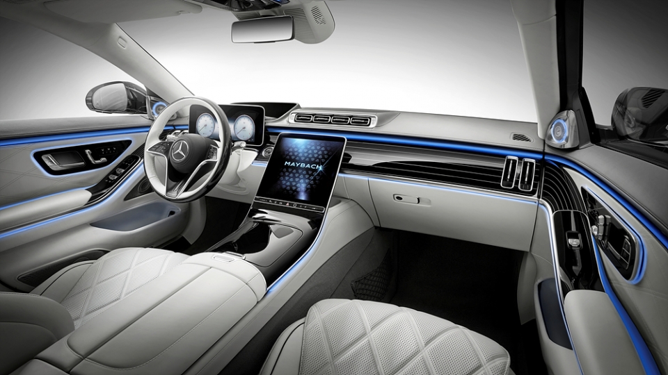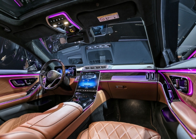 마이바흐 S580의 실내 분위기를 결정짓는 요소 중 하나는 앰비언트 라이트입니다. 단순한 색상 연출을 넘어, 주행 모드와 연동되는 방식으로 공간의 성격을 바꿔줍니다.