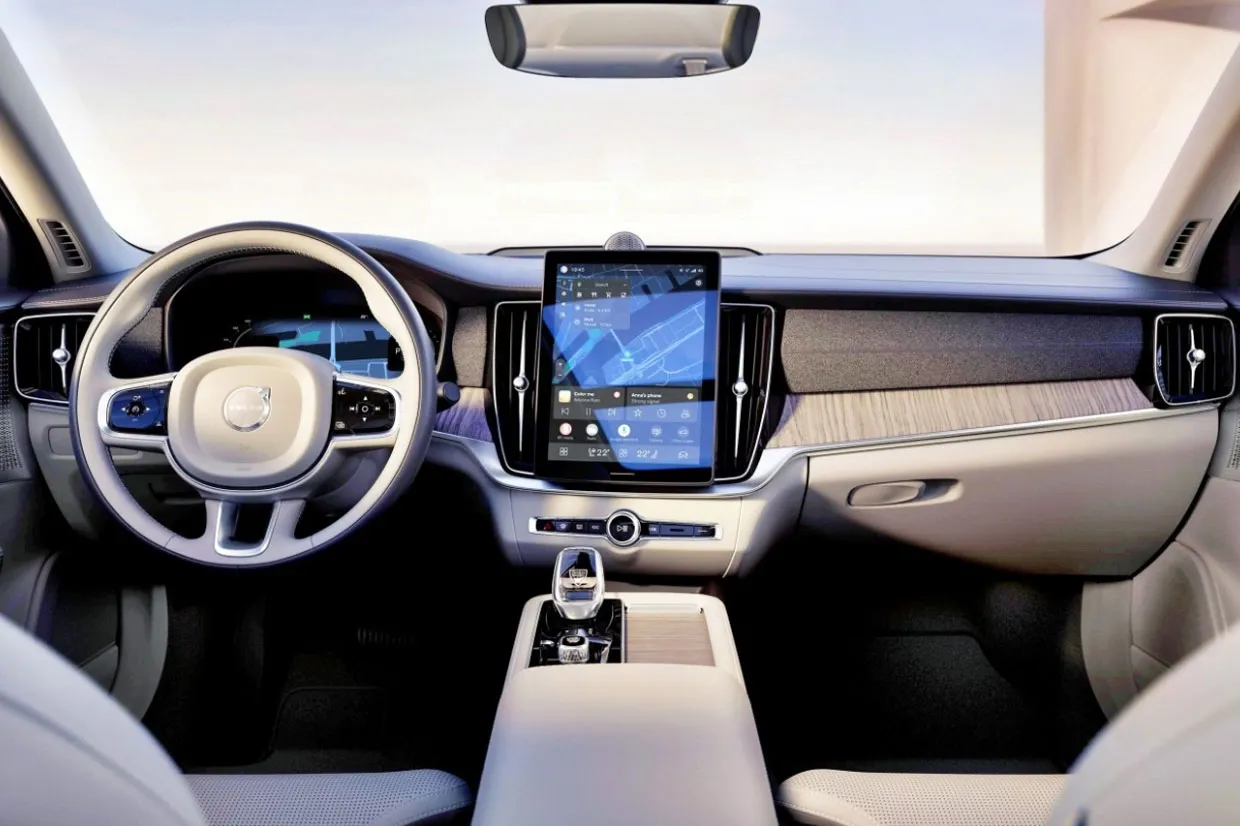 볼보 S90의 인포테인먼트 시스템은 9인치 세로형 터치 디스플레이를 중심으로 구성되어 있으며, Google 내장형 시스템(Google Built-in)이 적용되어 직관적이고 반응 속도가 빠릅니다.