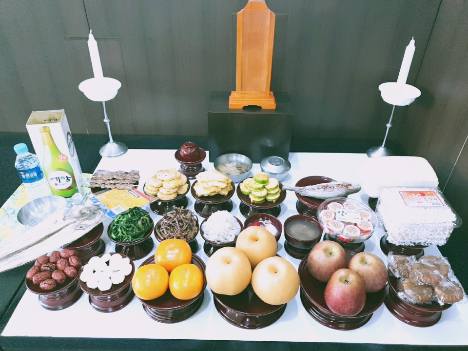 - 가정 제례: 고인의 위패나 영정 사진을 모시고 가족만으로 진행