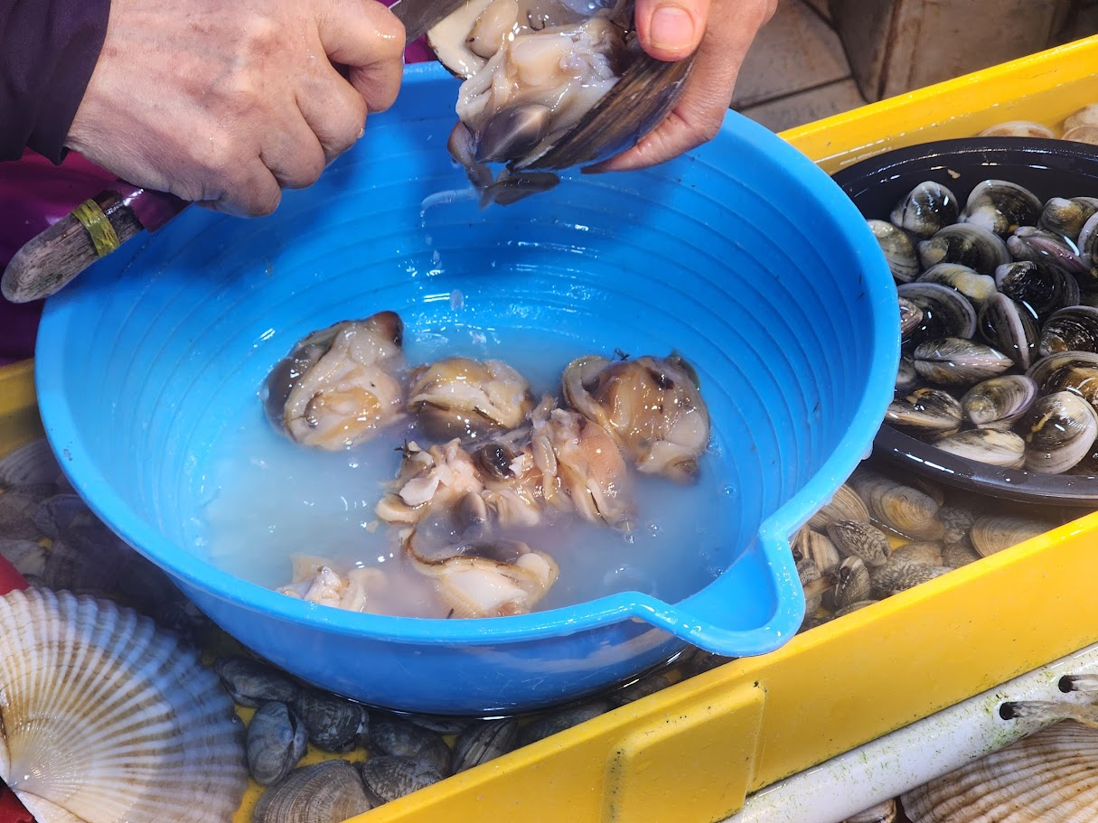 연안부두는 산지에서 올라오는 물량이 비교적 빠르게 집결되는 도매·소매 혼합형 유통 구조를 가지고 있습니다. 중간 유통 단계가 상대적으로 짧고, 손질 이전의 활새조개 비중이 높아 가공 비용이 적게 반영됩니다. 이 때문에 동일한 자연산 새조개라도 온라인 쇼핑몰이나 백화점 수산 코너보다 kg당 가격이 낮게 형성되는 경우가 많습니다.