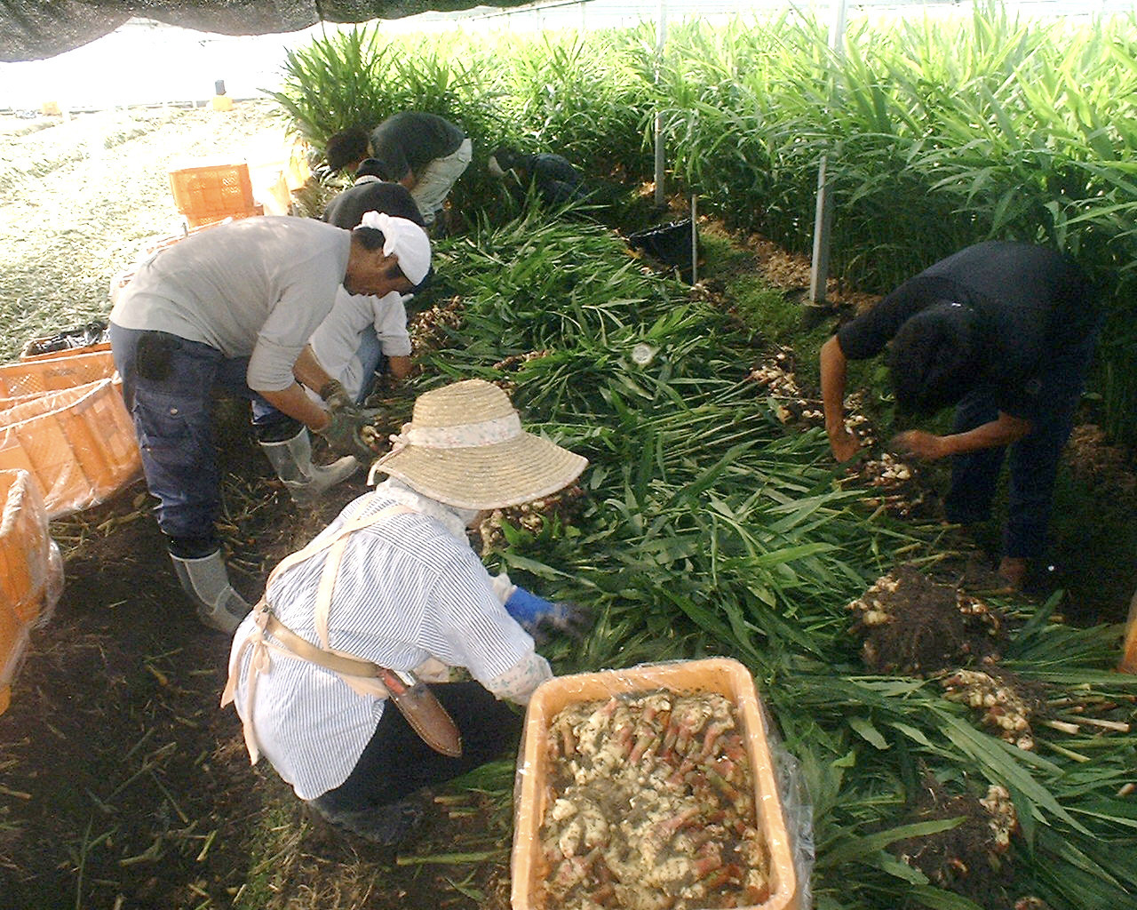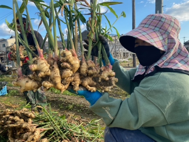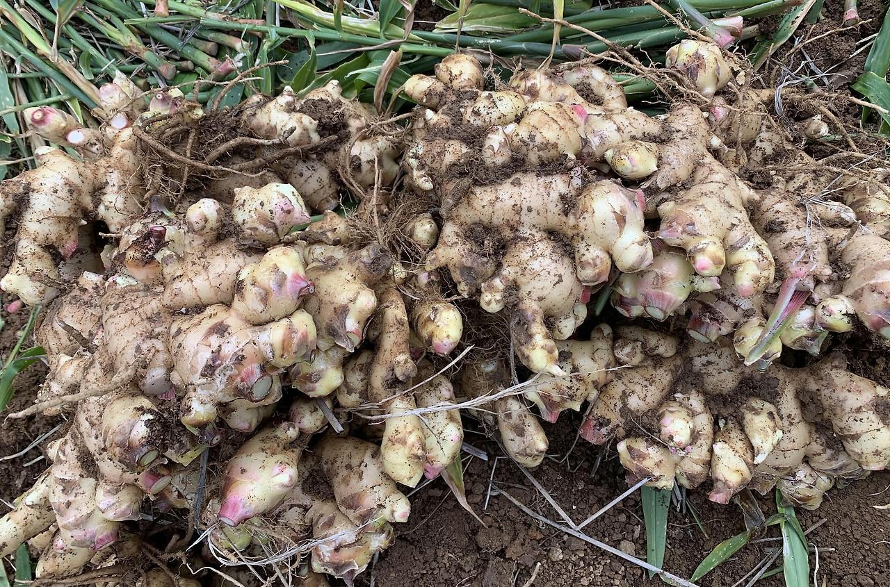 생강을 수확할 때는 기계보다 수작업이 품질 유지에 유리합니다. 생강의 뿌리줄기는 얇고 다층으로 엉켜 있어 삽이나 괭이를 사용해 캐는 과정에서 손상이 가기 쉽습니다.