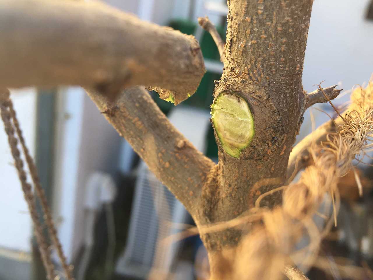 - 중심부 목재가 노화해 결실이 감소하면 지면 50 cm 위에서 전지톱으로 절단, 강한 새순을 3개만 남겨 재정지