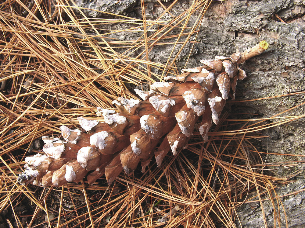 현장에서 가장 빠른 방법은 떨어진 바늘잎 다발을 확인하는 것입니다.