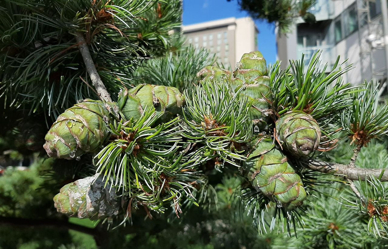 - 특징: 잣을 생산하는 경제수로 잎이 부드럽고 청록색입니다.