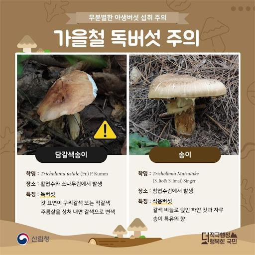 산행으로 들떠서 혹은 비싼 버섯에 눈이 멀어서 야생에서는 독버섯과 식용버섯을 쉽게 구별할 수 없습니다.