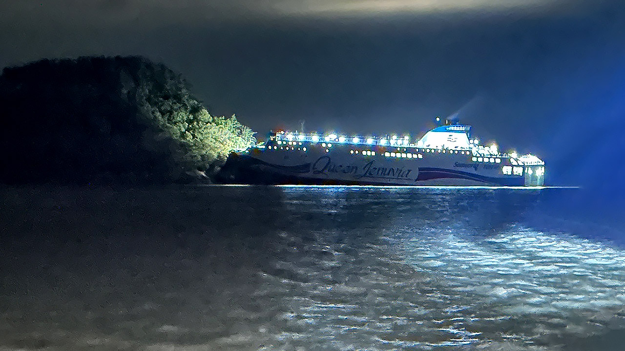 19일 오후 8시17분쯤 전남 신안군 장산도 남방 족도에 여객선 퀸제누비아2호가 좌초돼 해경이 구조 작업을 벌이고 있다. 목포해경 제공