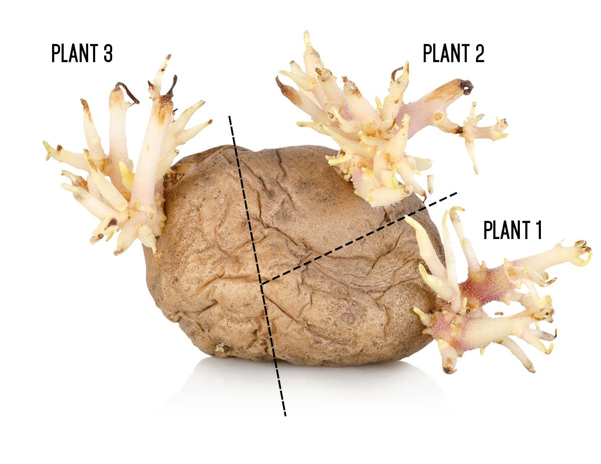 • 감자 한 개에는 평균 10-20개의 씨눈이 분포하므로, 과도하게 잘게 자르면 각 조각에 영양이 부족해집니다.