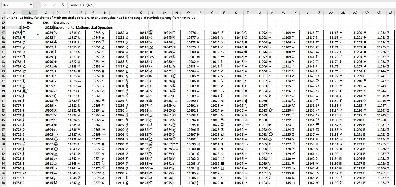 일부 최신 엑셀 버전에서는 유니코드 입력을 지원하기 때문에 기호의 유니코드 값을 입력한 뒤 Alt + X 조합으로 문자를 변환할 수 있습니다. 다만 엑셀에서는 Alt + X가 완전 지원되지 않는 경우가 있어, Word에서 변환한 기호를 그대로 복사하여 셀에 붙여넣는 방식도 자주 사용됩니다.