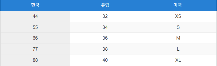여성 바지 사이즈표 EU 36은 한국 사이즈로 어느 정도일까