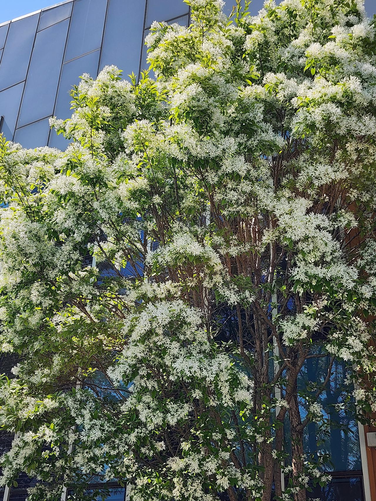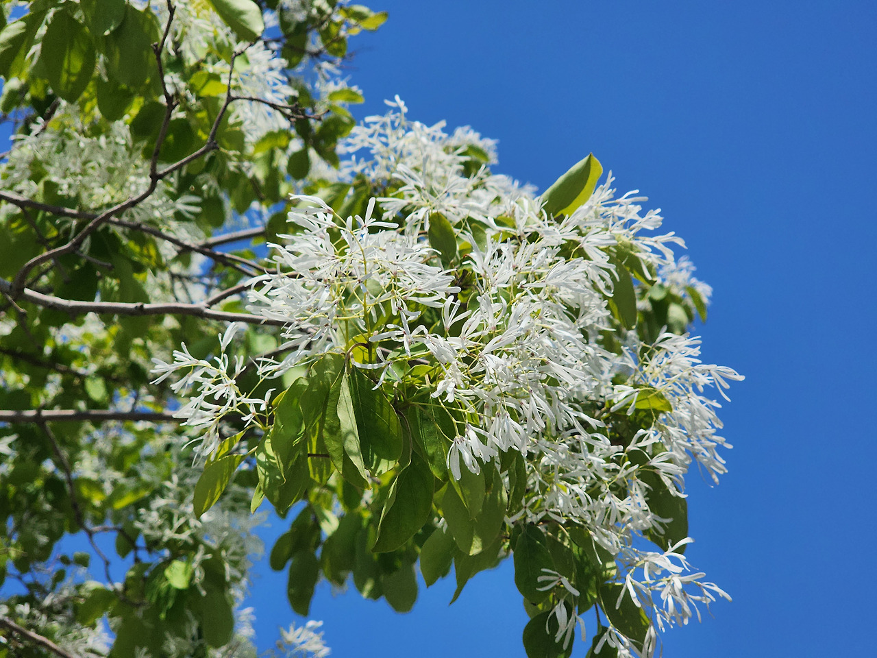 - 큰 나무에 눈처럼 흰 꽃 → 이팝나무