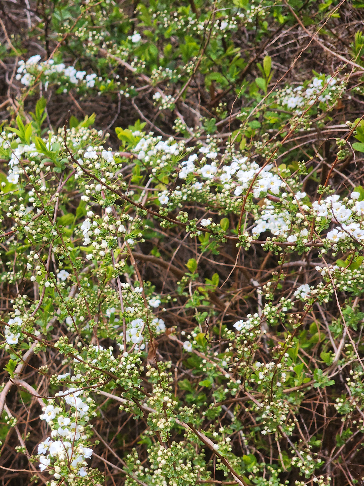 - 조팝나무: 작은 꽃이 둥글게 뭉쳐 핌