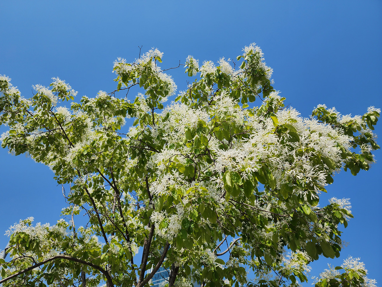 이팝나무는 키가 매우 크고 수형이 넓게 퍼지기 때문에 가로수나 공원수로 많이 식재됩니다. 특히 꽃이 만개하면 멀리서 보면 나무 전체가 흰 눈을 뒤집어쓴 듯한 장관을 연출합니다.