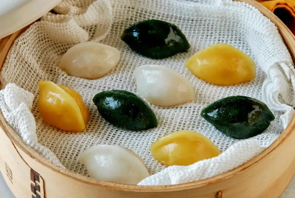 - 흰 쌀가루로 만든 전통 떡으로 가장 보편적입니다.