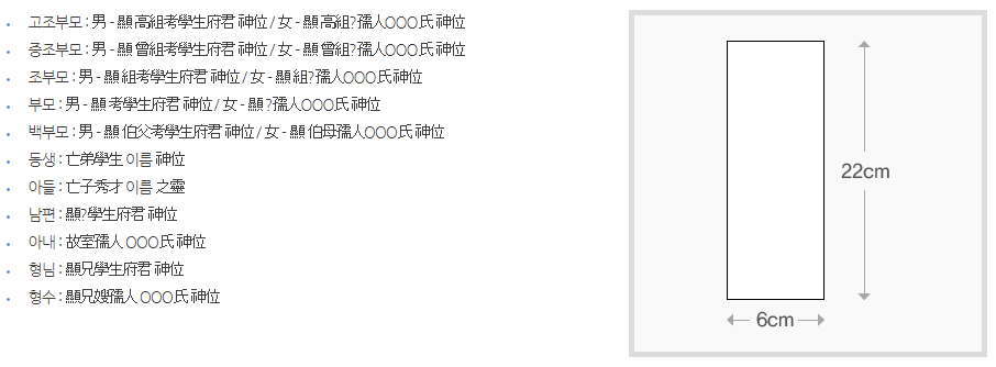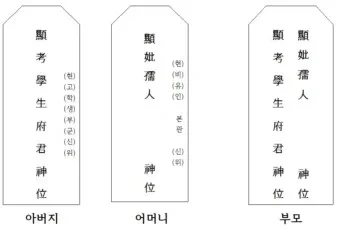 제사 지방쓰는법 - 동생, 아버지, 어머니, 숙부, 남편, 누나