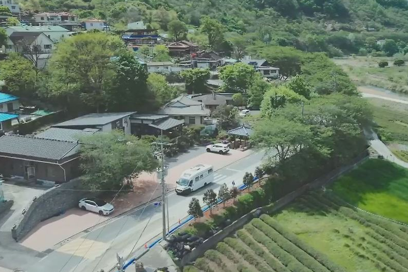 • 장면 설명: 캠핑카가 고장 나 멈춰 선 장면.