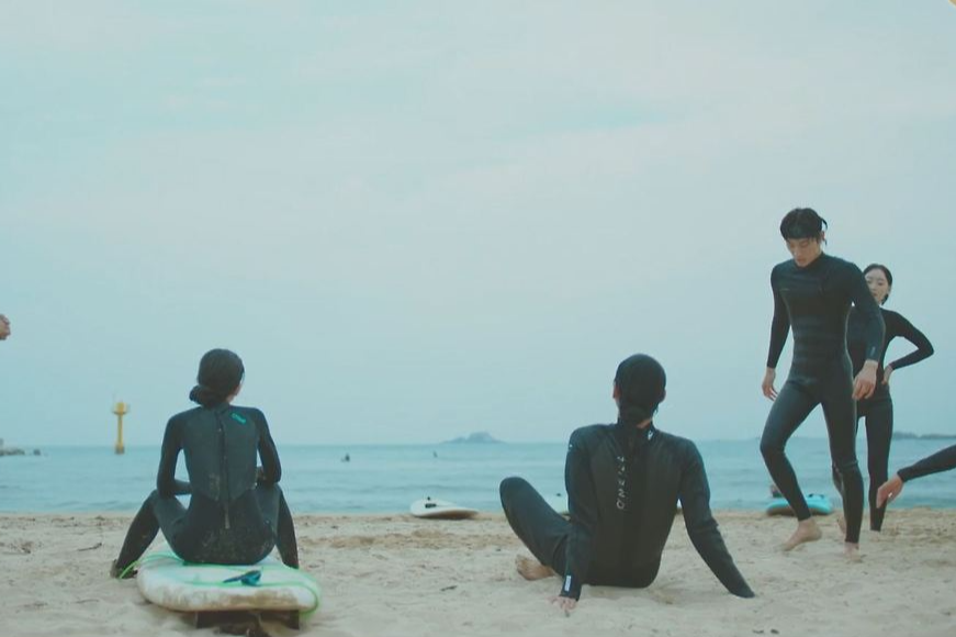 - 장면 설명: 서핑을 배우는 장면으로, 청춘과 도전의 상징 같은 공간.
