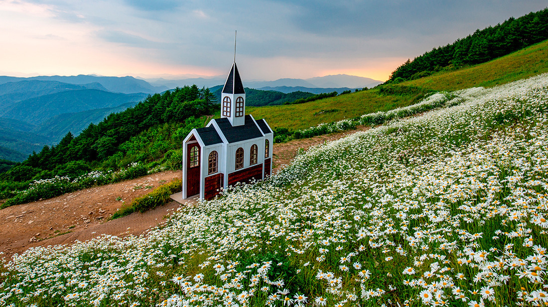 - 봄: 샤스타데이지 개화, 하얀 꽃밭 장관