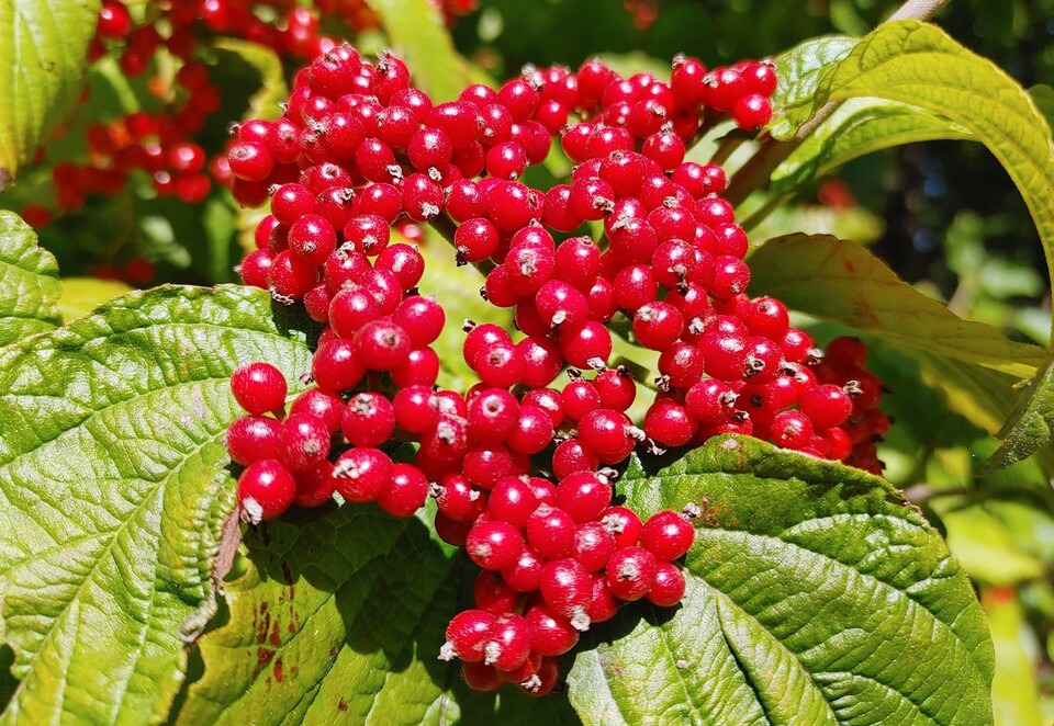 - 잎은 넓고 톱니 모양, 열매는 투명감 있는 붉은 빛
