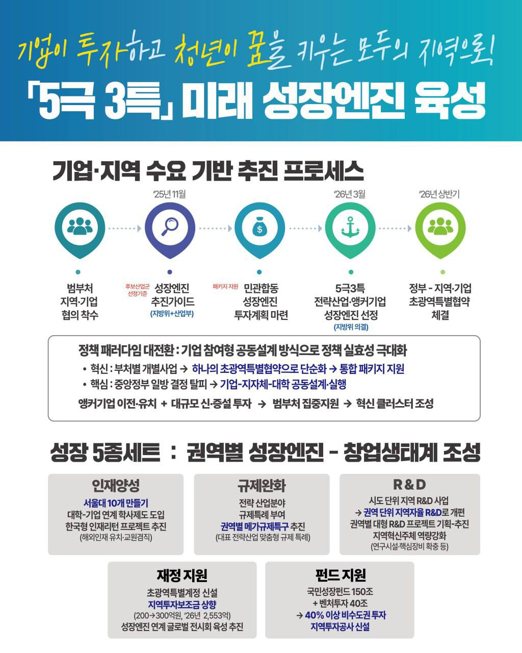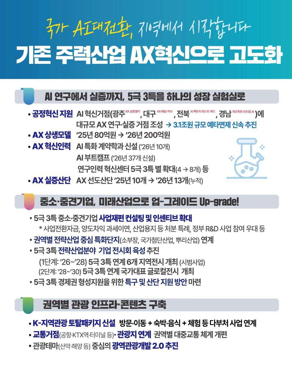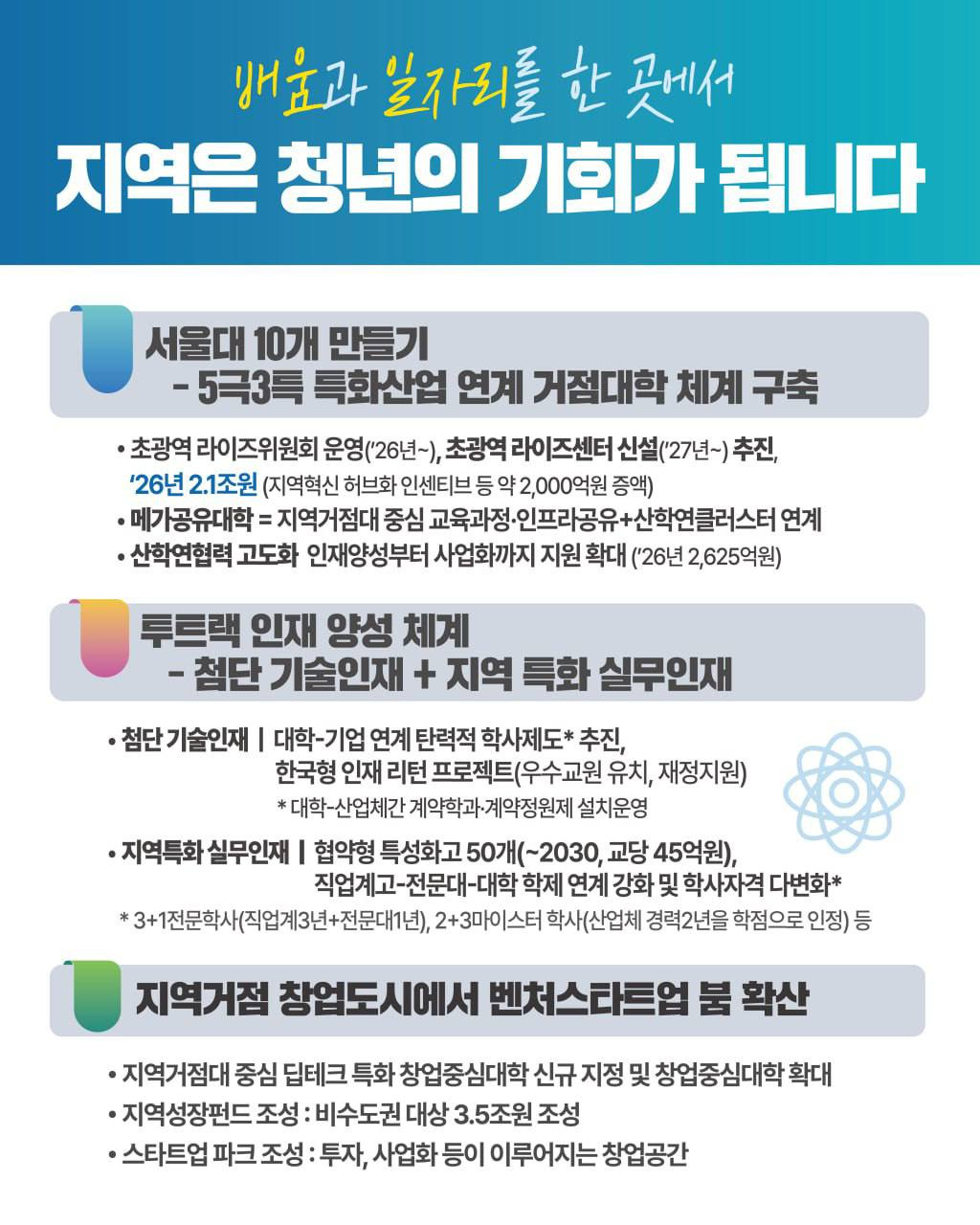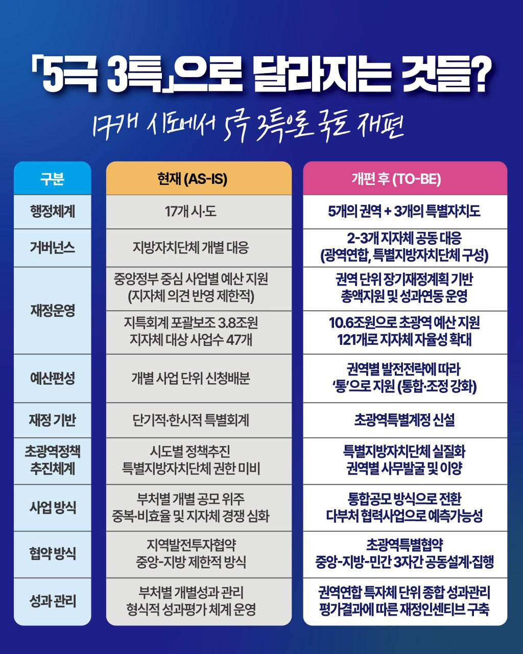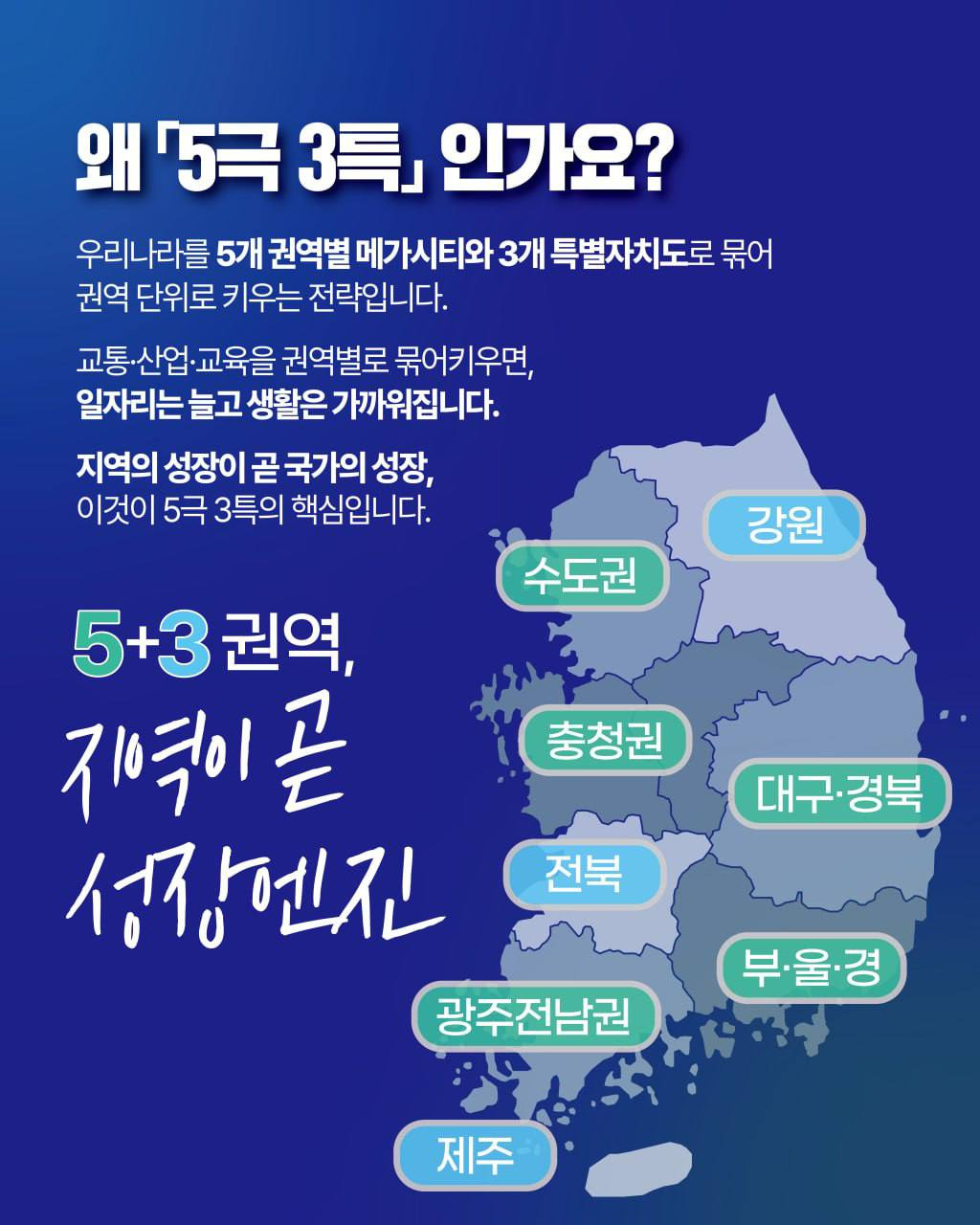 물론 제도 설계, 재정 지원, 지역 간 이해 조정 등 해결해야 할 과제도 적지 않습니다. 그러나 장기적인 관점에서 볼 때 5극 3특은 지역 균형 발전과 국가 경쟁력 강화를 동시에 추구하는 전략적 틀로서 충분한 논의와 검토의 가치가 있는 접근 방식이라 할 수 있습니다.